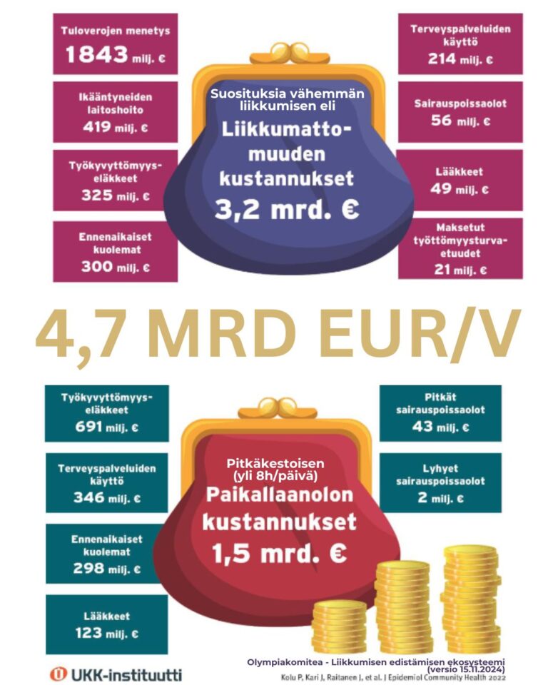 Koska kokonaisvaltainen terveys, hyvinvointi ja sitä myöten myös kestävä kansantaloutemme luodaan arjen pienissä valinnoissa, muun muassa arjen hyötyliikunassa.